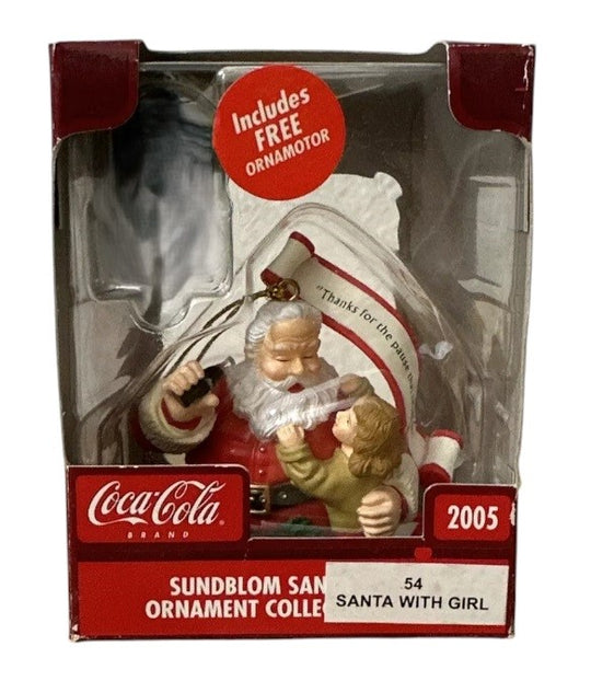 2005 Coca-Cola Sundblom Santa with Girl, No Ornamotor, Open Box