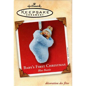Hallmark Keepsake Ornament 2002 Baby's First Christmas Blue Bootie, Open Box