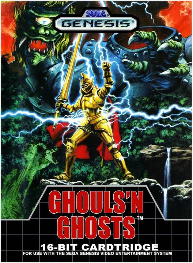 Sega Genesis Ghouls 'n Ghosts, Boxed No Manual, Cartridge Has Damaged Label