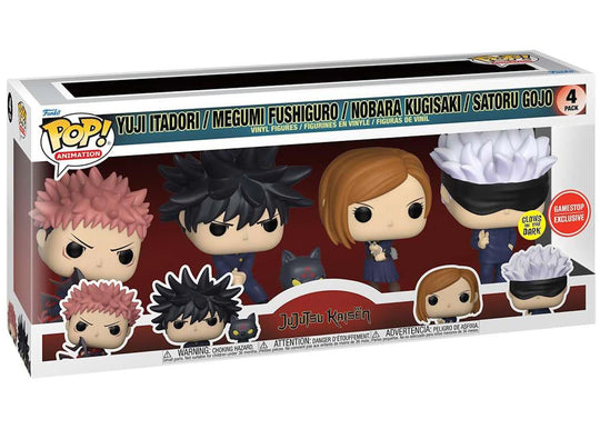 Funko Pop! Animation Jujutsu Kaisen 4-Pack (G.I.T.D.) (Gamestop Exclusive) (Yuji Itadori / Megumi Fushiguro / Nobara Kugisaki / Satoru Gojo) Dent on top Glows in the Dark Image is stock photo Contact Store For Shipping DetailsRegular price $115.00 -