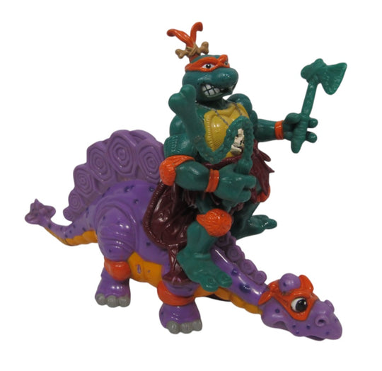 TMNT Cave-Turtle Mike and his Silly Stegosaurus Not Packaged, Missing Reins, 1993 Playmates