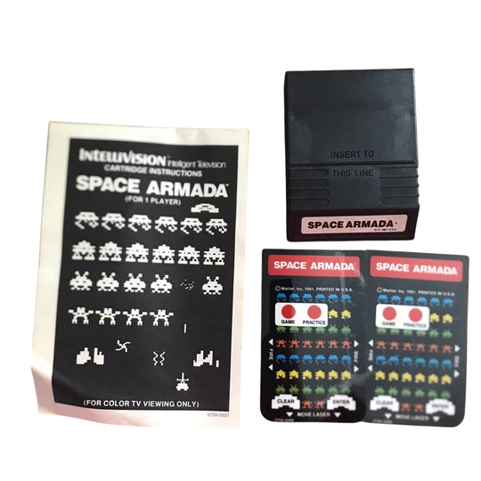 Intellivision Space Armada Cartridge W/ Instructions & Controller Overlays - (Not Packaged)